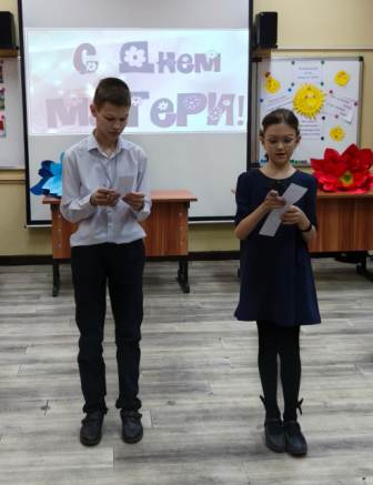 В последний день осени в школе прошёл праздник «Букет для мамы» для учащихся 4-6 классов, подготовленный классным руководителем Иванец О.Н. и учащимися 5 класса.